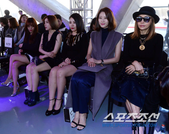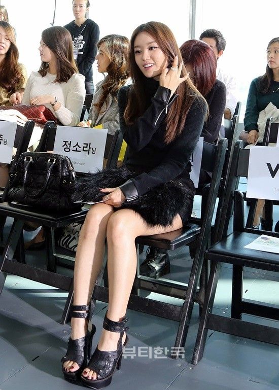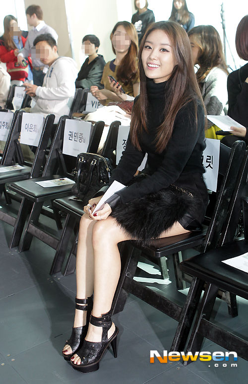 脚組んで美脚を魅せながらファッションショーを見るSecretジウン