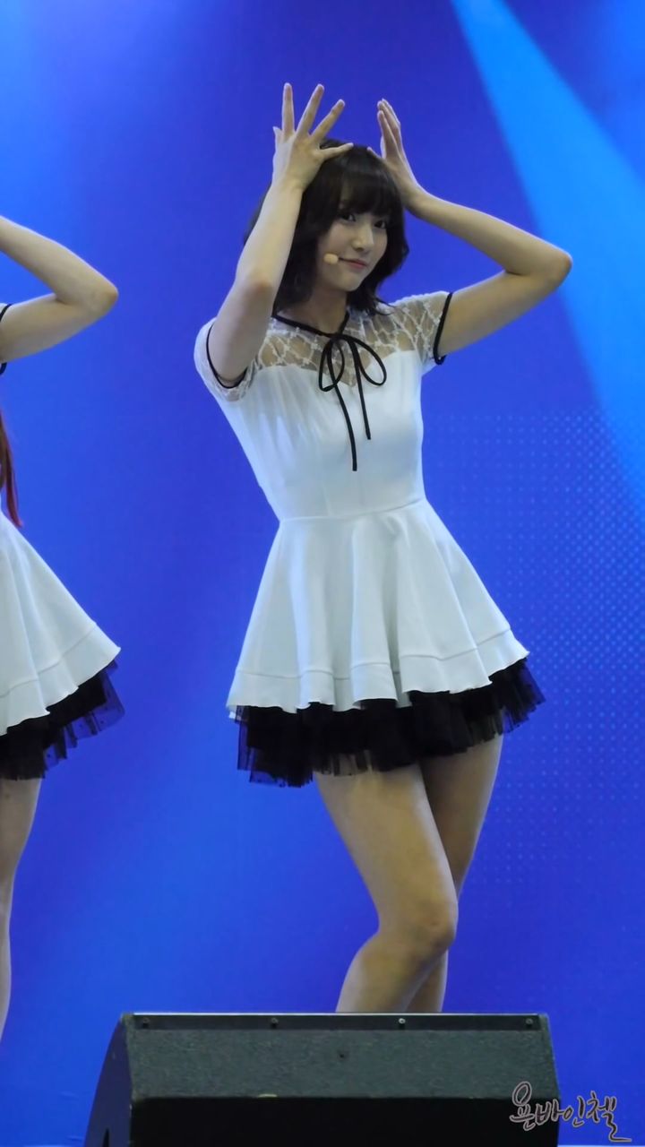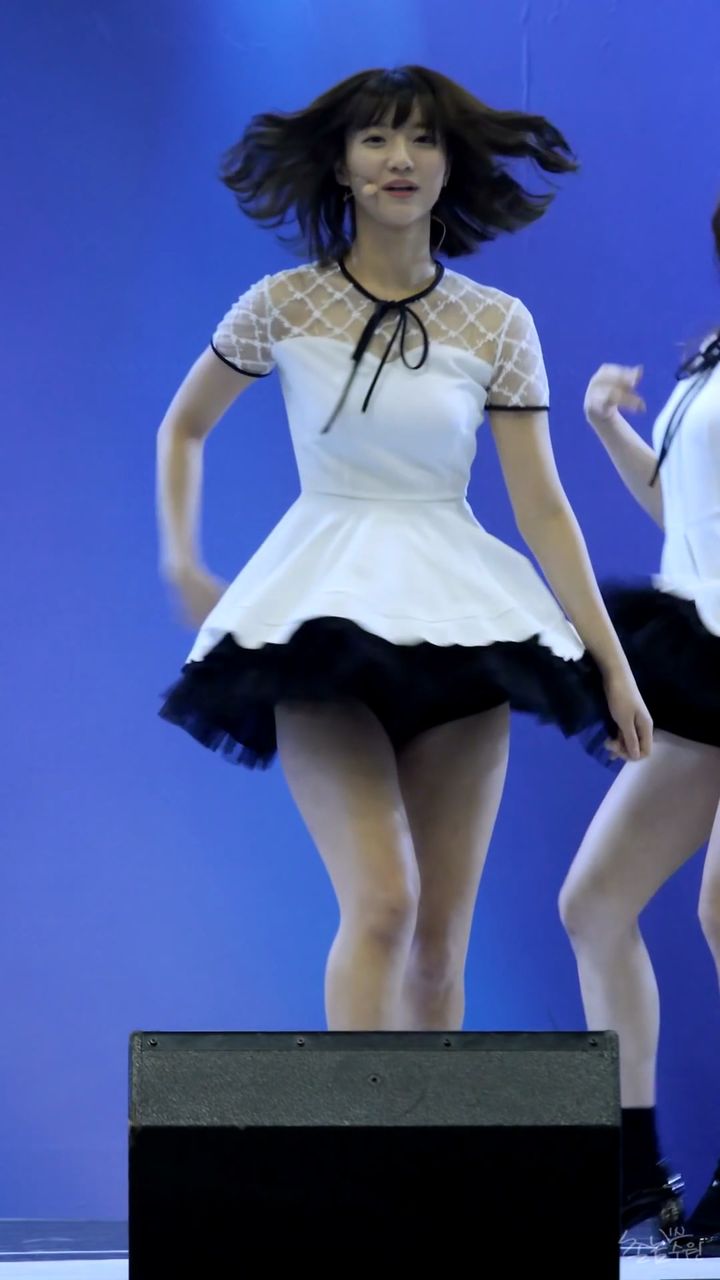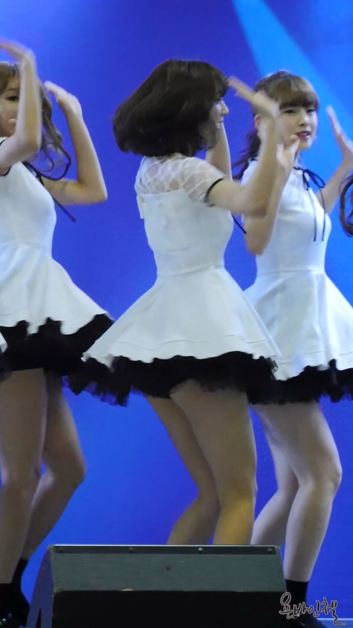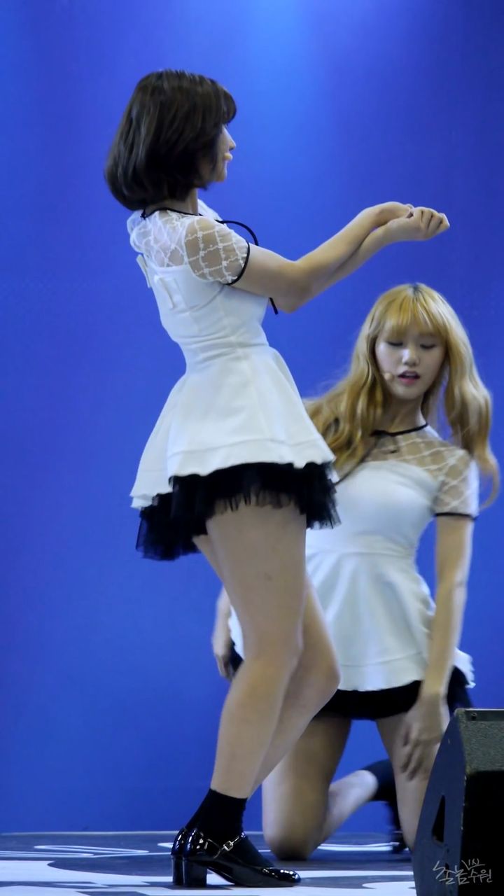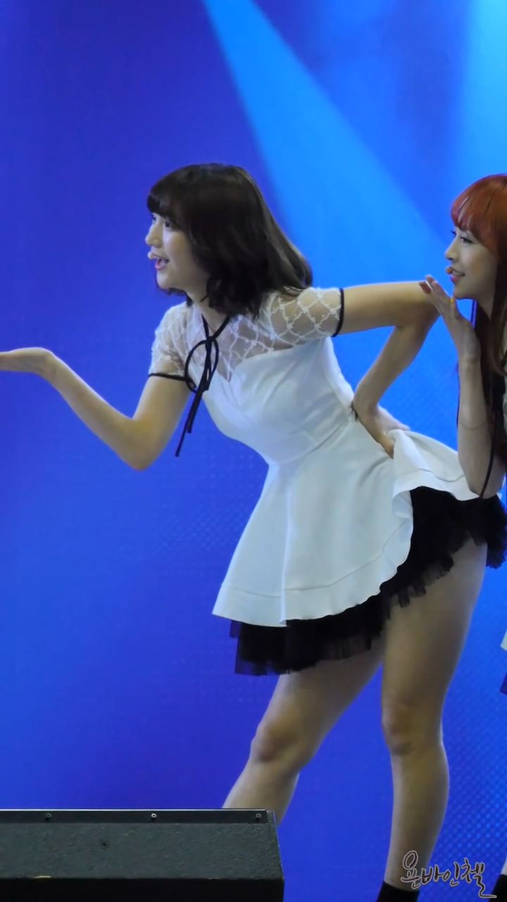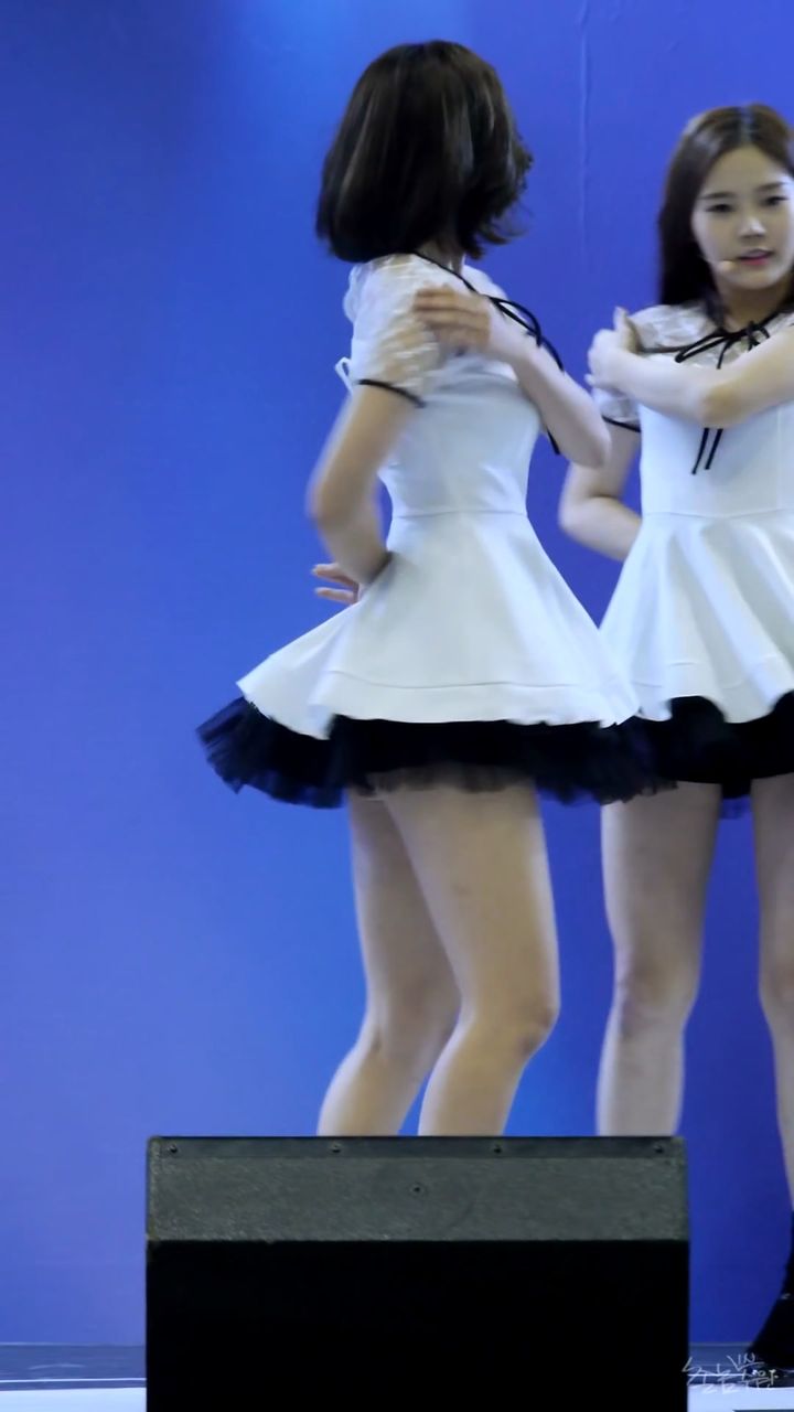 ちょっと動くだけで尻たぶ露出しちゃう超ミニスカ衣装で歌って踊るOH MY GIRLビニ