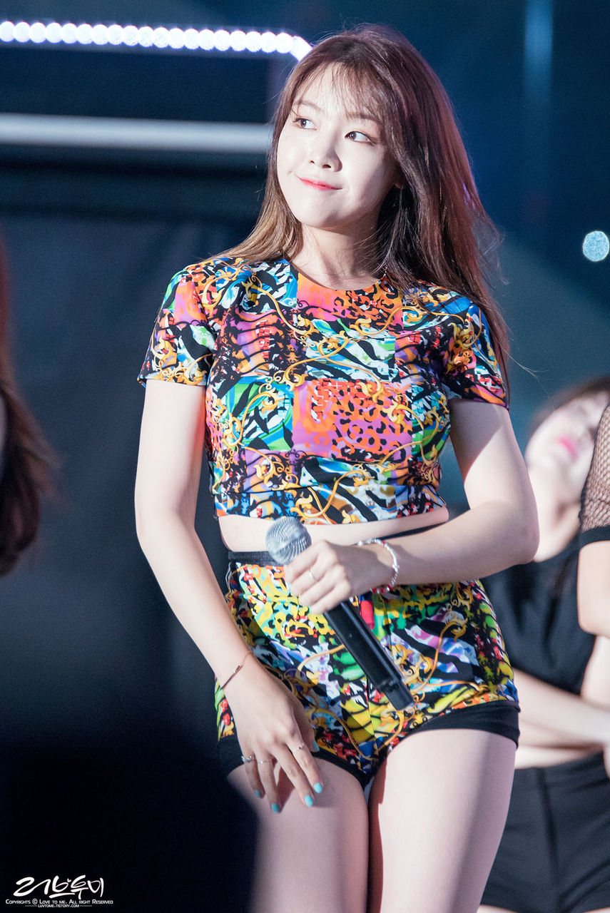 服が捲れ上がってお腹丸出しになるOH MY GIRLアリン