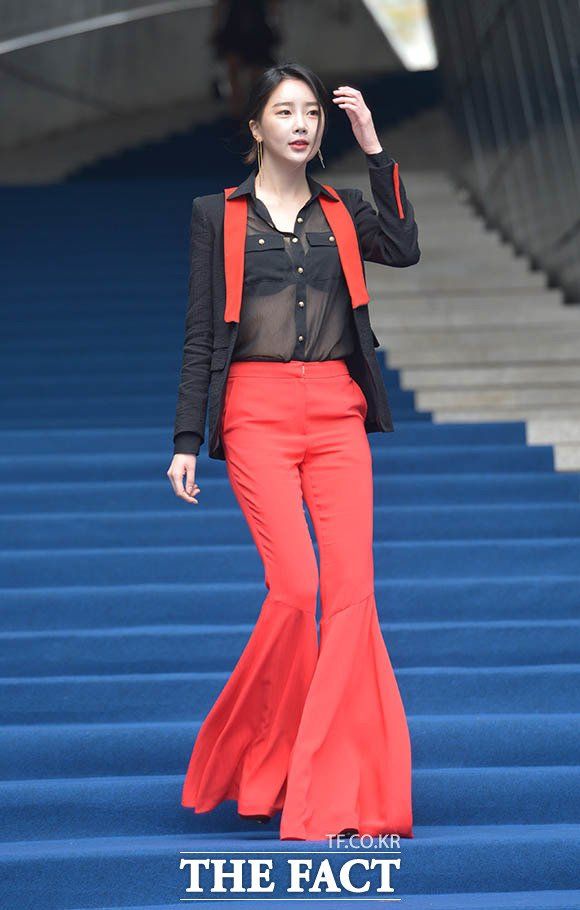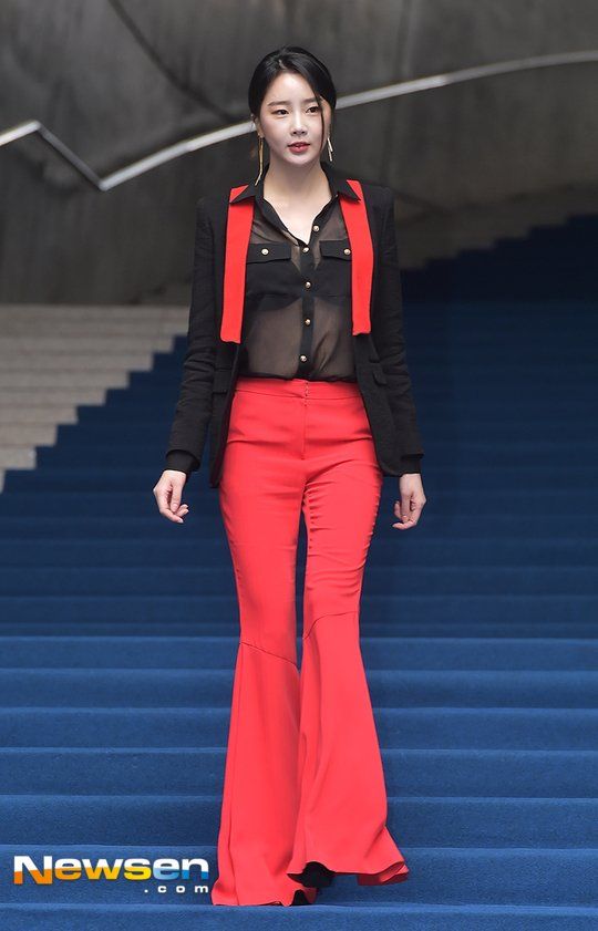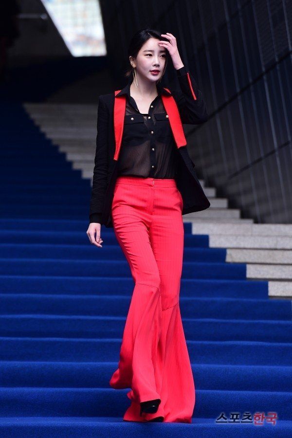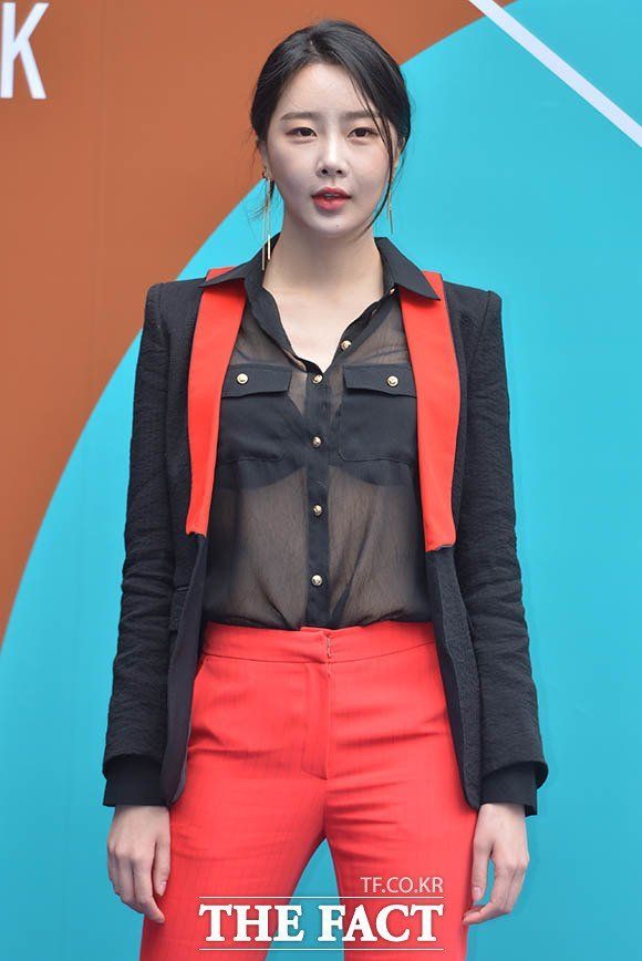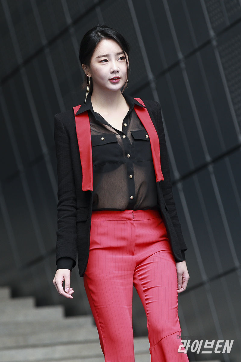 ジャケットの中スケスケで黒ブラジャー丸出しにしてドラマの発表会に出席する女優パク・セヨン